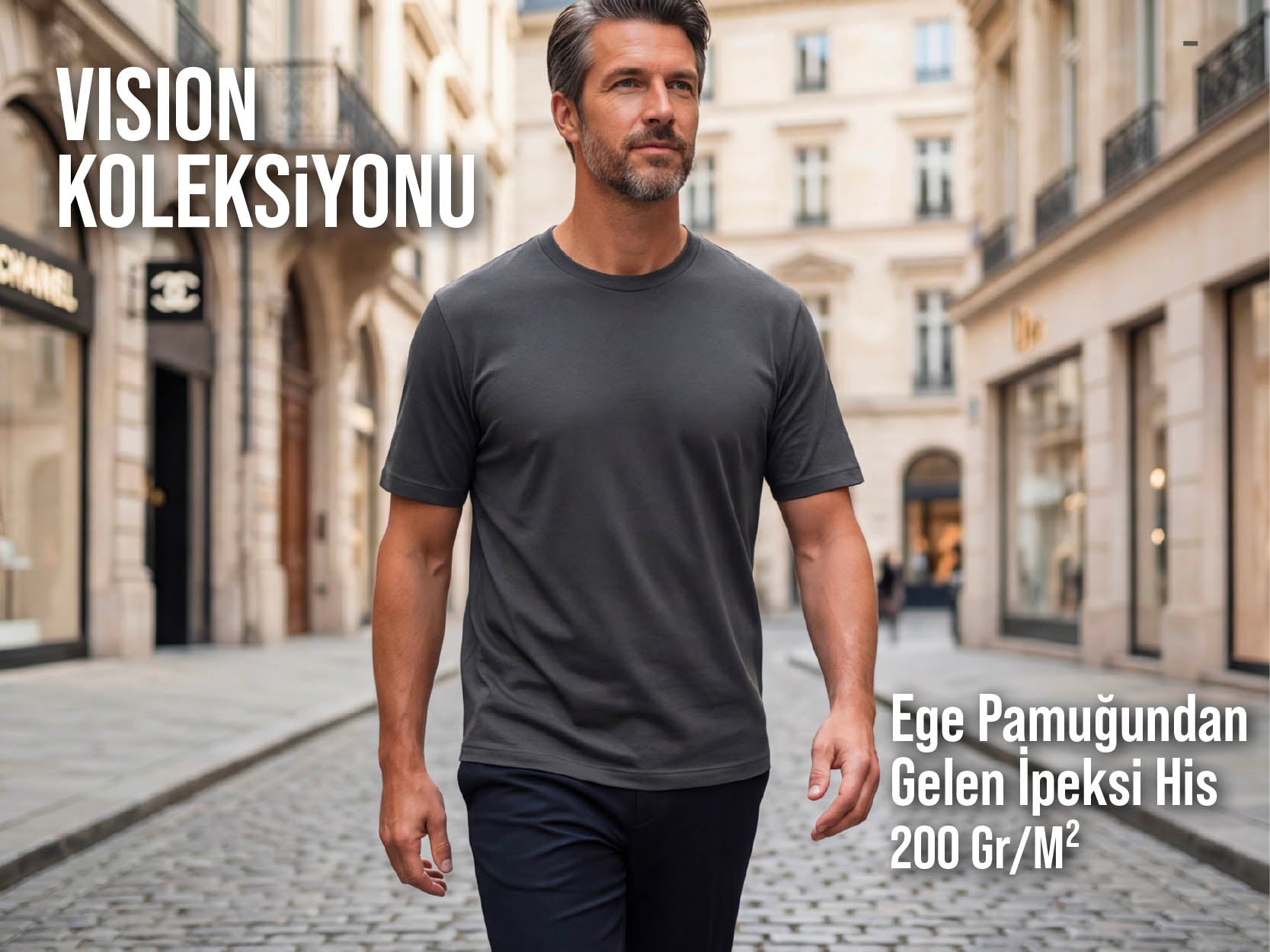Kalite ve konforu bir arada sunan Vision T-Shirt, günlük giyiminde fark yaratmak isteyen profesyoneller için tasarlandı.200 gr/m² üzeri yoğun dokulu pamuk kumaşı, piyasadaki ince tişörtlerin aksine çok daha dayanıklı, tok ve kaliteli bir duruş sergiler.
